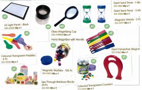 Explore and Investigate with this pack that includes magnetics, timers, magnifying tools and a light panel.